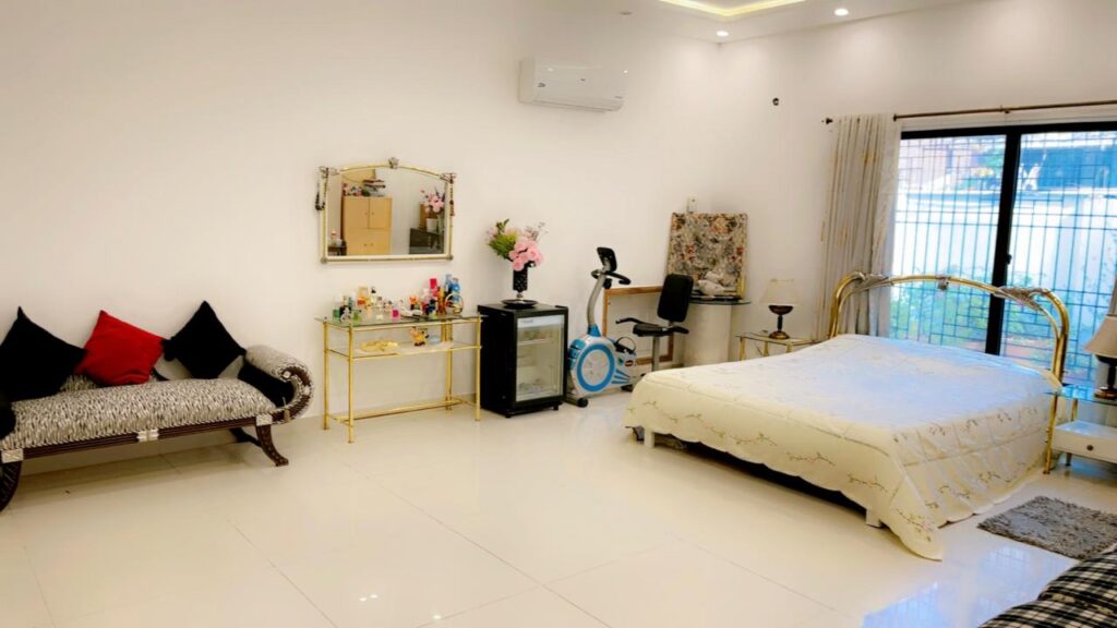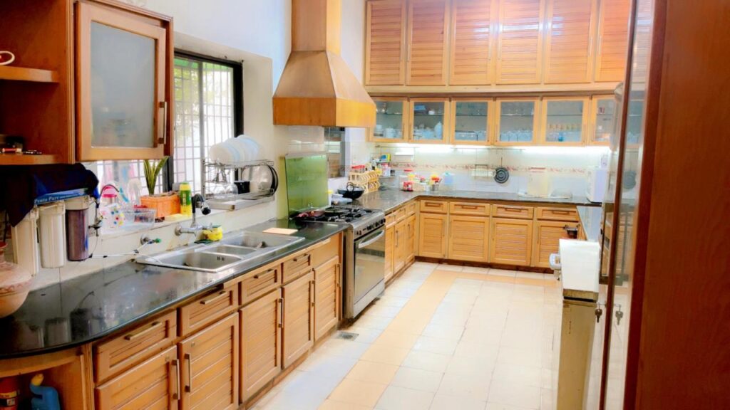 All doors are solid wood. Front windows are pure aluminum. All cupboards are solid wood with glass display cabinets. House went through a renovation 6 years ago: Main gate replaced, All bedroom floors changed to tiles.