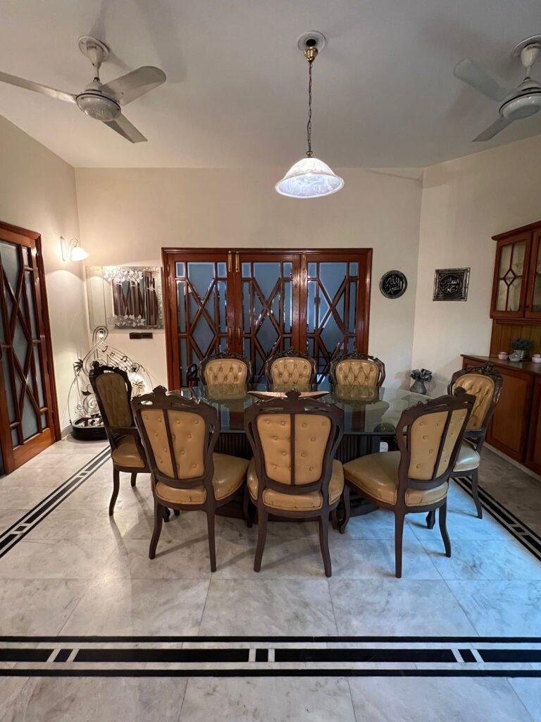 All doors are solid wood. Front windows are pure aluminum. All cupboards are solid wood with glass display cabinets. House went through a renovation 6 years ago: Main gate replaced, All bedroom floors changed to tiles.