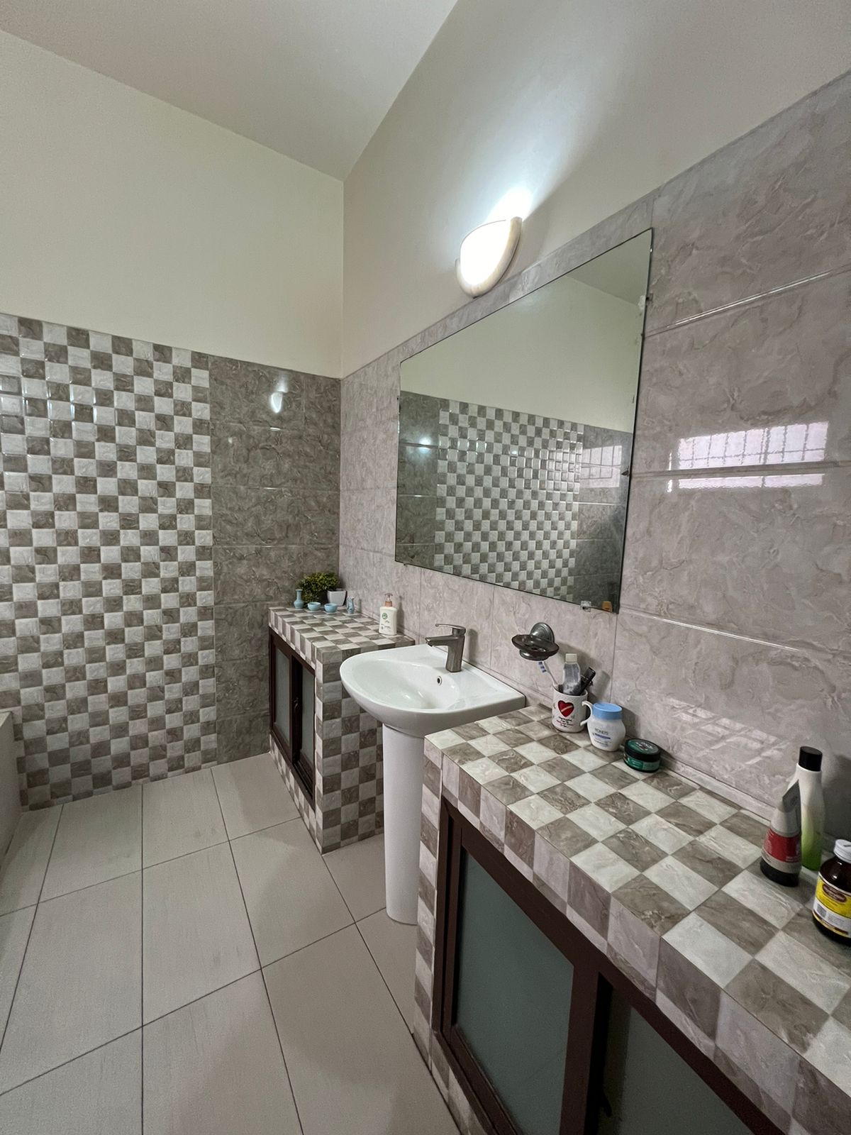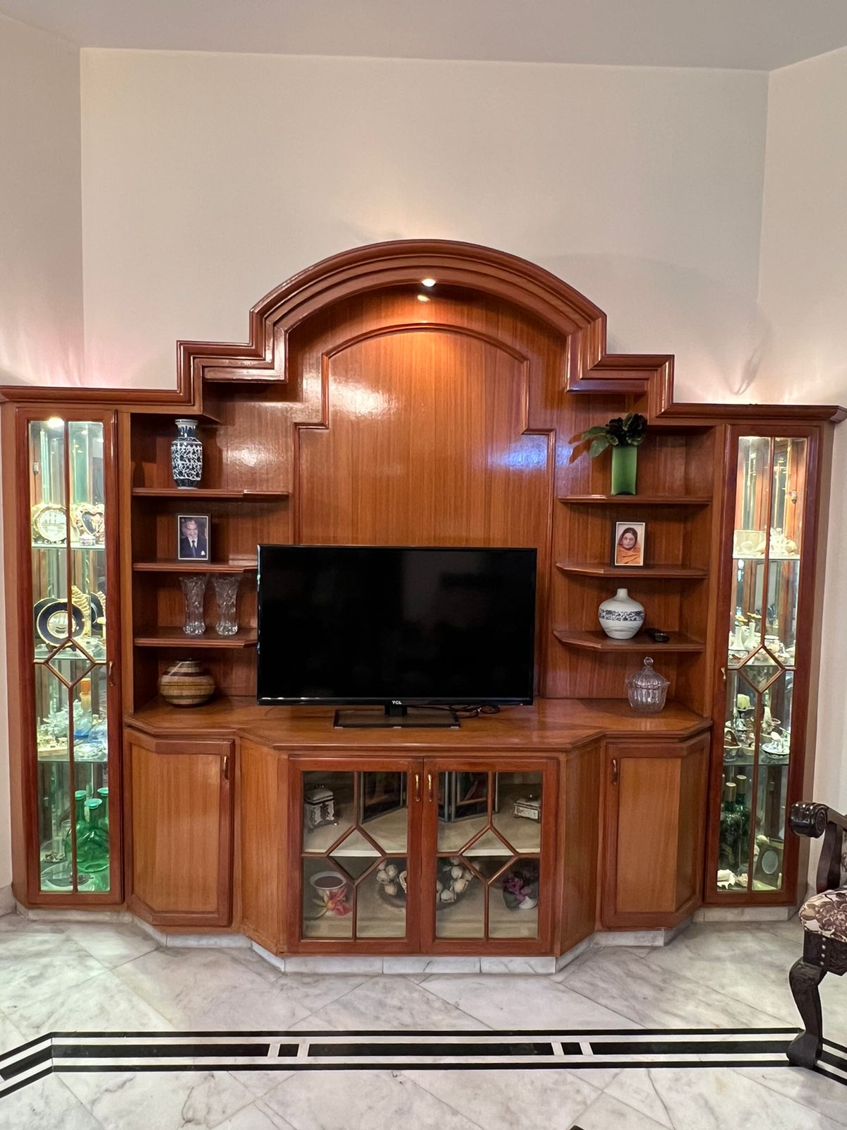 All doors are solid wood. Front windows are pure aluminum. All cupboards are solid wood with glass display cabinets. House went through a renovation 6 years ago: Main gate replaced, All bedroom floors changed to tiles.